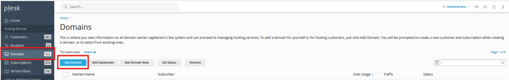 - Click on Add Domain or Add Subdomain, depending on your preference.