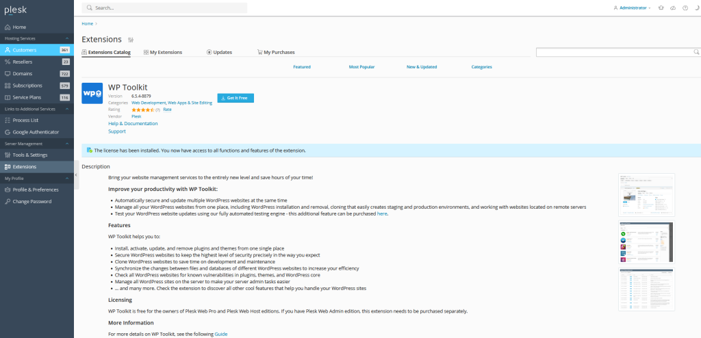 Plesk’s WordPress Toolkit simplifies WordPress installation and management: